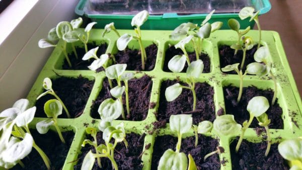 Wie? Sie sind warm auf dem Kachelofen gestanden und von rund 40 Samen, sollten laut Verpackung nur 20 Pflänzchen entstehen, jedoch haben 38 gekeimt und sind zu Setzlingen herangewachsen und in Blumentöpfe umgesetzt worden.