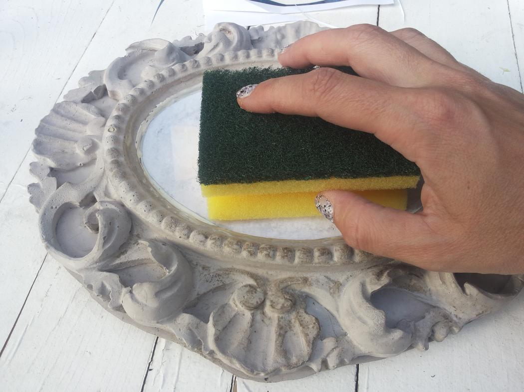 7. Schritt: Befeuchtet nun vorsichtig die Rückseite Eures Bildes mit Wasser und nehmt einen feuchten Schwamm / feuchtes Tuch und rubbelt das Papier weg. Unter dem Papier kommt nun die transferierte Farbe / das Foto hervor!