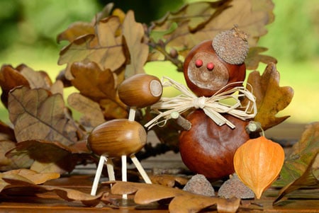Wer jetzt noch nicht in der Bastellaune für Adventssterne ist, kann auf andere Dekoideen zurückgreifen und mit den Kindern Bastelobjekte aus den Früchten des Herbstes wie Kastanien, Eicheln, Blätter uvm. entstehen lassen. Sie glauben nicht, was man damit alles anstellen kann!